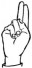 На ћирилици написано БОГДАН АРСИКИН састоји се из 13 слова [?]. Исписано ћириличном једноручном азбуком за глувонеме: